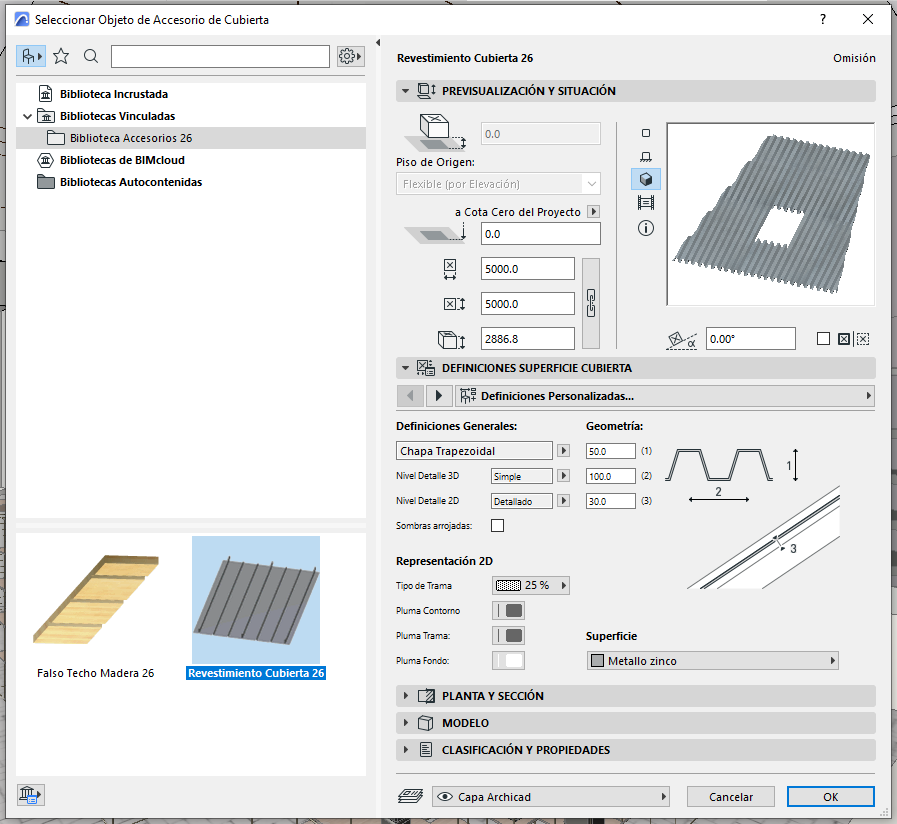 Este complemento mejora el modelado de zonas 3D al aplicar objetos accesorios a paredes, techos y pisos seleccionados y crear elementos de acabado interior. Puedes editar la forma y los parámetros de material de estos elementos utilizando las herramientas estándar de Archicad, así como la funcionalidad paramétrica. No olvidar agregar la biblioteca de accesorios en el Administrados de bibliotecas.