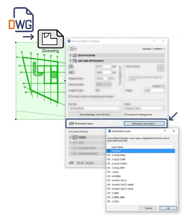 ArchiCAD al ser un software BIM que se basa en la metodología del Open BIM o plataforma abierta, tiene herramientas que permiten el correcto intercambio de información con otros softwares de forma rápida y fácil. Siendo el formato DWG probablemente el más utilizado para los dibujos CAD, ArchiCAD ha desarrollado diversos flujos que permiten un intercambio de información tanto de entrada como de salida de forma práctica, disminuyendo la perdida de información.