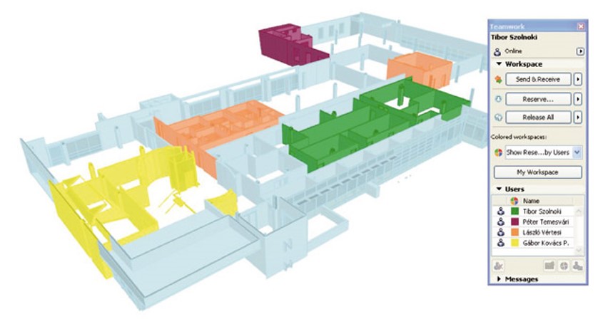 - El trabajo en equipo con BIMcloud no requiere habilidades de TI de los arquitectos. Los miembros del equipo pueden reservar partes del proyecto o trabajar en pisos individuales, secciones, alzados o planos.